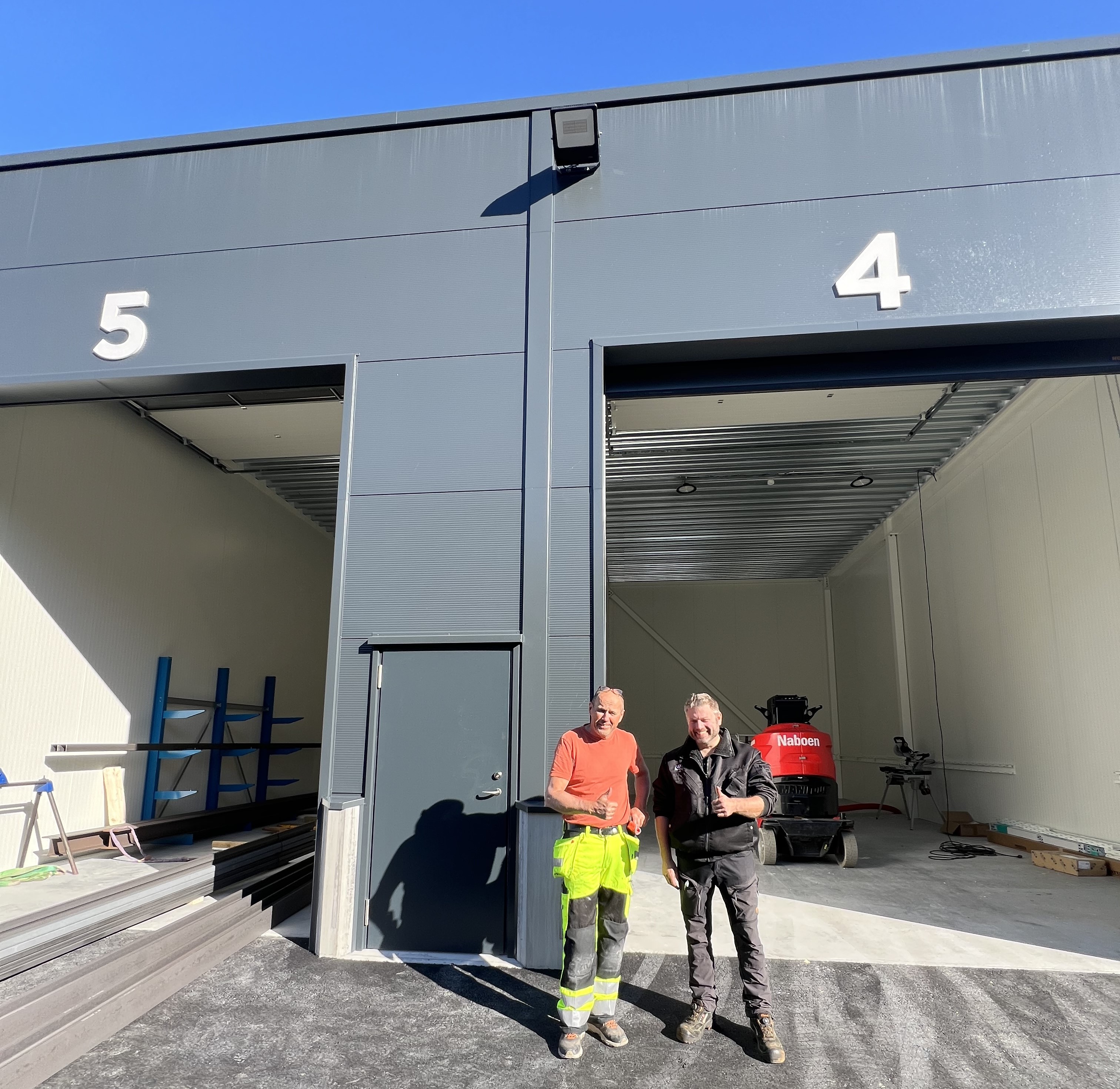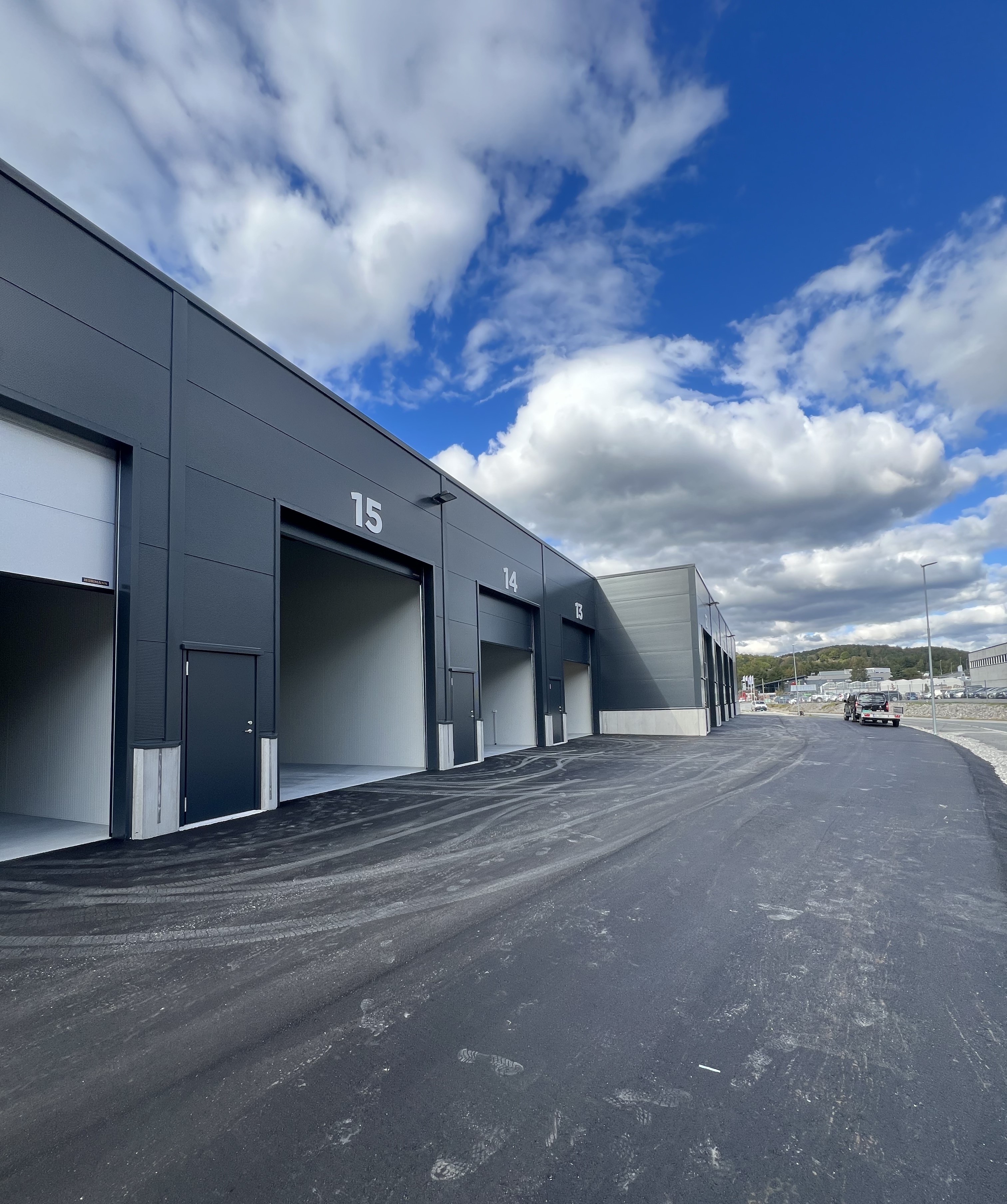 Både lagerhallens plassering (Vingård, tett på sentrum av Egersund) og utforming (store, luftige haller) gjør at vi er trygge på at dette på alle måter er en god investering for kjøperne. Allerede fra dag 1 var det et yrende liv i hallene der messaniner blir bygget og tilpasninger gjort for at hallen skal gi mest mulig verdi for den enkelte eier.