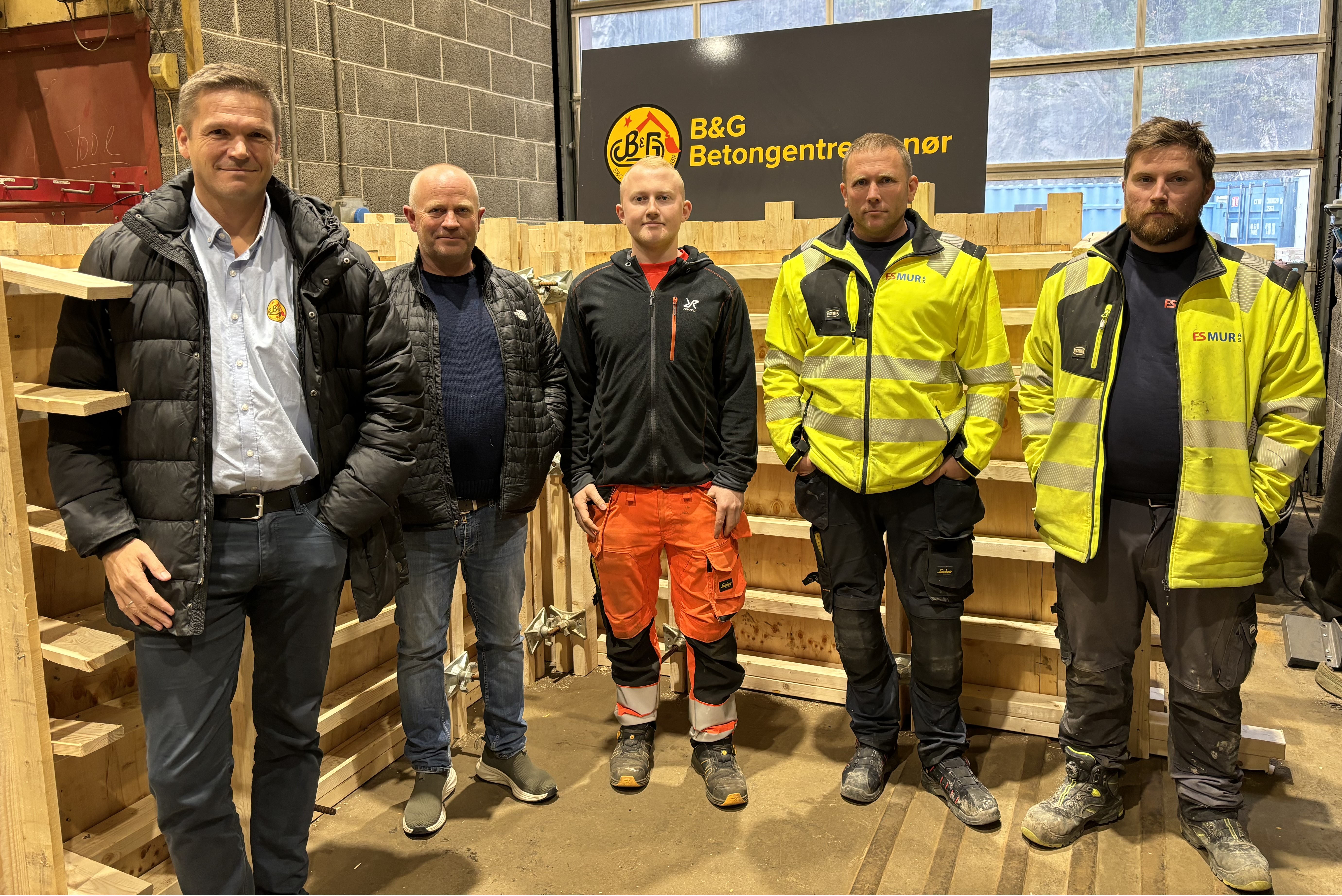 På bildet fra venstre: Gunnar Førsund - daglig leder i B&G Betongentreprenør, Tom Kåre Hestvåg - Prosjektleder i B&G Betongentreprenør, Morgan Ågedal, Arne Glomsaker - Prøvenemda og Trygve Kvernmo - Prøvenemda